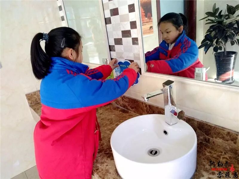 随后,孩子们走进公厕,在水龙头上贴上“节水用水”的标语,温馨提示市民随时关紧水龙头。