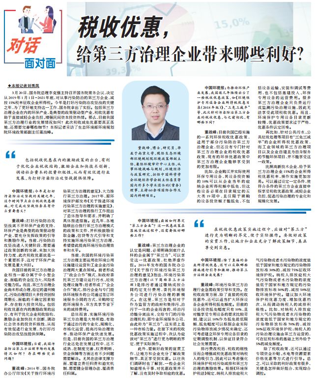 这意味着下一阶段打好污染防治攻坚战有了减税政策的进一步支持,对于第三方环境治理企业而言,激发和助推作用较为直接和明显。