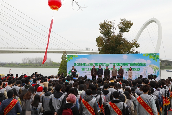在宣传纪念活动上,青年志愿者代表宣读了倡议书,来自全省各地的300多名青年志愿者,参加了互动签名、授牌、步行巡江宣传等活动。
