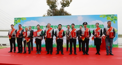 3月22日,省水利厅联合江苏省委宣传部、共青团江苏省委、《扬子晚报》社、南京市水务局、江苏省水利学会在南京市青奥公园举办“世界水日”“中国水周”宣传纪念活动,同时举行“江苏省首届十大河湖卫士”授牌仪式。江苏省委宣传部副部长葛莱,共青团江苏省委社联部部长汤江林、省水利厅副厅长高圣明、《扬子晚报》社总编王文坚、南京市水务局副局长项阳出席了活动。