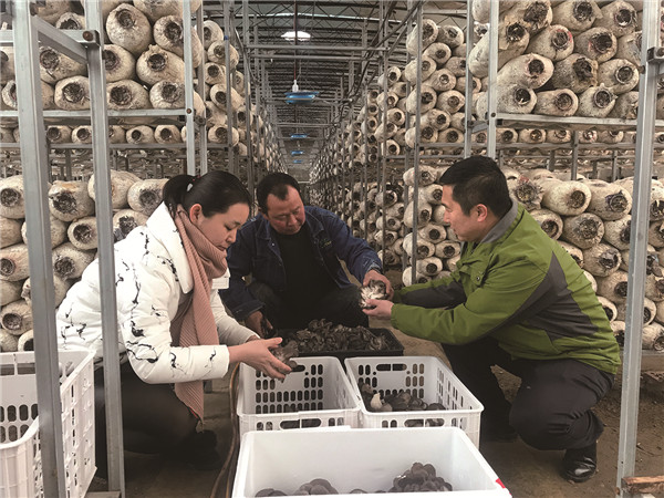 阜康市城市管理局驻头工南村“访惠聚”工作队队员帮助农户采摘蘑菇。