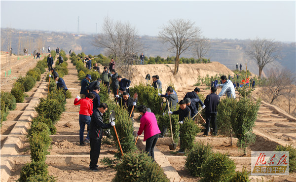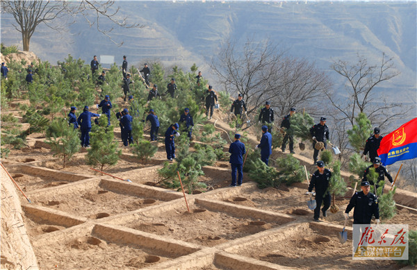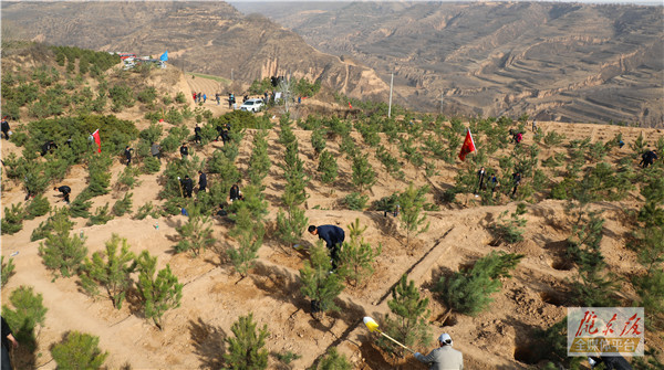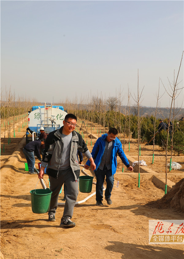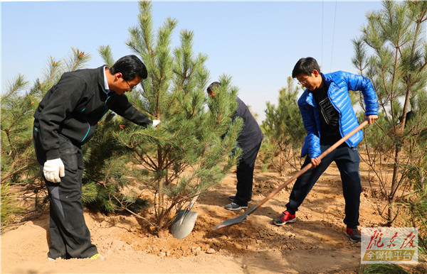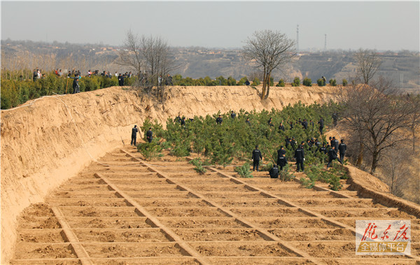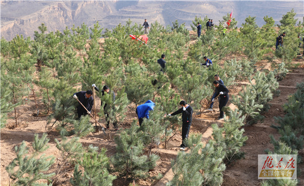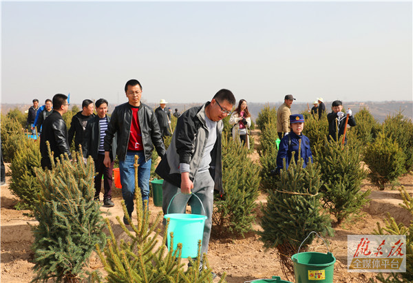 驻峰机关1800多名干部职工在西峰区贺塬村义务植树