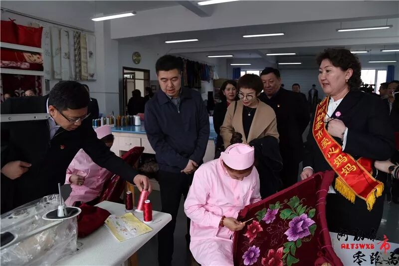 (通讯员:谢平刚)3月29日,阿勒泰市妇联举行巾帼巧手创业就业孵化基地揭牌仪式。地区行署副专员关威,地区妇联副主席朱萍,市人大主任柯孜尔·毕拉力,市政协主席贾生别克·卡肯,市委常委、组织部部长耿新东,市委常委、宣传部部长蔡维维,市政府副市长秦勇,市政府副市长王锐等地市领导,各乡镇场、街道妇联主席及各届妇女代表60余人参加活动。市妇联党组副书记、主席哈提帕·努尔沙帕主持仪式。