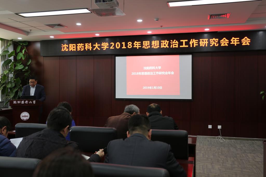 1月10日,沈阳药科大学2018年思想政治工作研究会年会在行政楼117会议室召开。教职工及学生思想政治工作研究会理事长、校党委副书记侯延林、教职工及学生思想政治工作研究会理事、全校学生工作干部、获奖作者近百人参加了大会。会议由学生思想政治工作研究会副理事长、研究生院副院长李岩主持。