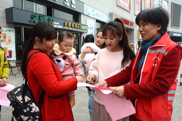 4月2日下午,宁化县妇联组织翠江镇巾帼志愿者在城区万星广场开展“文明祭祀,绿色清明”宣传活动。(温玉坤)