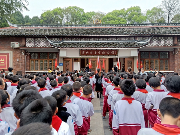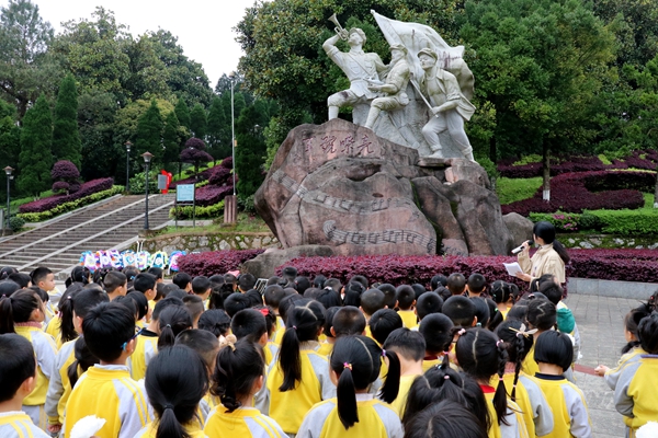 4月2日,宁化县城东小学四年级300多位学生在老师的带领下到宁化革命纪念园,以追思、共颂誓词、参观革命纪念馆等形式开展清明活动。(张琳)