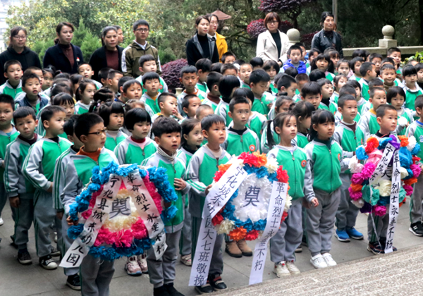 4月2日上午,宁化县实验幼儿园18名教师和164位幼儿来到宁化革命纪念园,开展了“缅怀先辈?红色传承”祭扫活动。(曾秀菊 张莹)