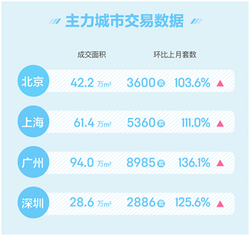 报告显示,3月全国67个主要城市新房均价为16365元/㎡,环比略有下降。但成交方面,2月春节交易低谷基数较低,北京、上海、广州、深圳4城新房成交量环比明显上涨,其中,广州新建住房成交环比上涨136.1%。
