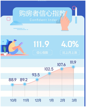 3月,房地产市场现"小阳春",一二线房地产市场明显升温,购房者预期有所调整。58同城、安居客发布《2019年3月国民安居指数(新房、二手房市场报告)》显示,3月,全国用户找房热度环比上涨20.9%,作为改善型主要房型的三居室占据四成以上找房需求,购房者信心指数上升;二手房方面,70-120㎡面积段房源需求占比最高。