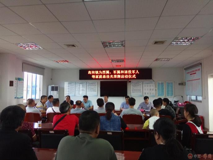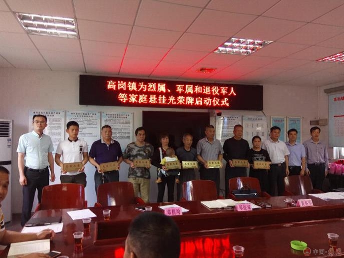 为弘扬拥军优属优良传统,贯彻落实省市县关于为烈属、军属和退役军人等家庭悬挂光荣牌的工作。4月9日上午,高岗镇举行为烈属、军属和退役军人等家庭悬挂光荣牌启动仪式,镇委书记郑按双、镇委副书记黄亦军、镇委委员、武装部长邓棋均、副镇长刘宁光、各村(居)委书记、烈属、军属和退役军人代表及相关工作人员近30人参加,仪式由刘宁光同志主持。