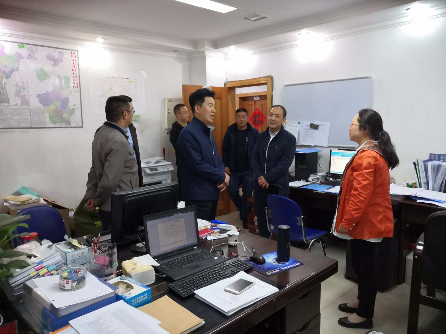 2019年4月8日下午,王秀江代区长一行到大观街道办事处进行实地调研,大观街道办事处党政主要领导陪同调研。王秀江代区长一行首先参观了大观街道社会协同发展中心及便民服务中心,实地了解中心设施建设、人员配备、制度健全、工作台账等相关情况,并亲自查看了办事处机关办公环境,与干部职工进行亲切交谈,详细了解大家的工作进展情况,鼓励干部职工要保持良好的工作作风、团结协作,在实践中坚韧意志、提升能力。