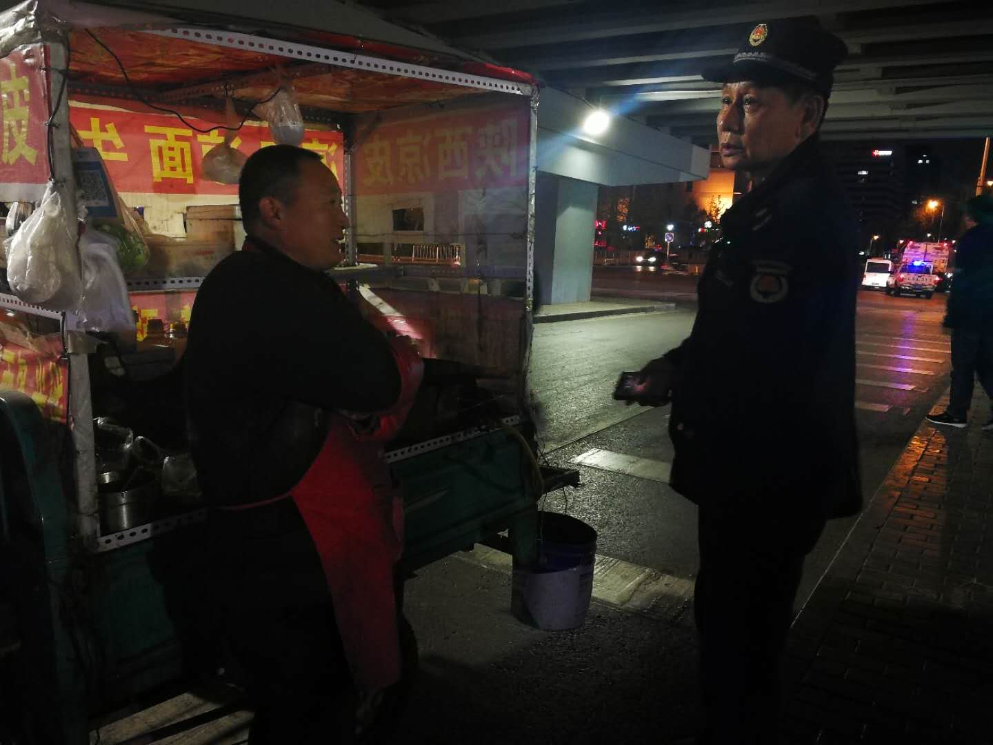 小关执法队对辖区惠新东桥下无照游商进行联合查处
