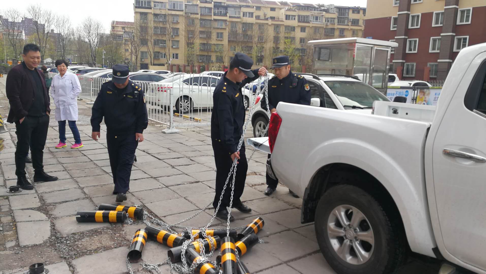 常营执法队拆除荟万鸿小区西侧底商商户私设的地桩、地锁等障碍物