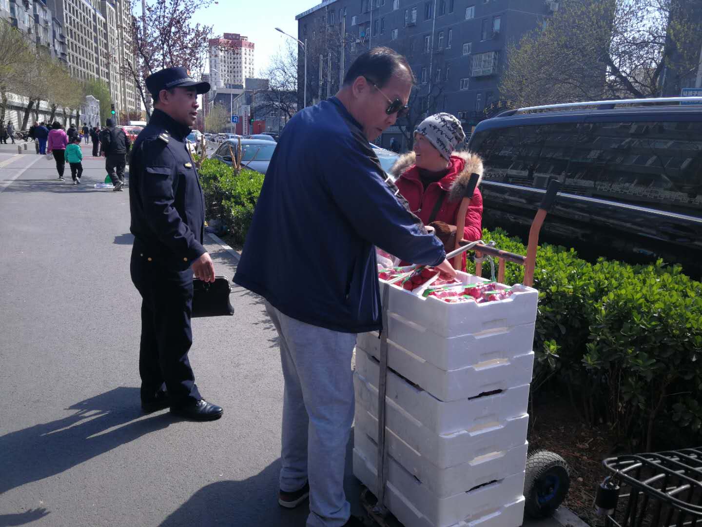 奥运村执法队对科学园南里西街进行检查,并对无照游商进行处罚