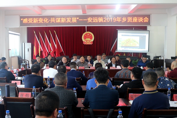 此次座谈会以“感受新变化?共谋新发展”为主题。与会人员观看了安远镇经济社会文化发展宣传视频和安远镇招商推介。该镇相关负责人向大家介绍了安远镇过去一年的经济发展和各项社会事业完成情况,并提出了下阶段工作计划。乡贤代表立足自身所在行业和领域踊跃发言,就发展家乡经济、改善投资环境、振兴教育事业、发展文化旅游业等热点问题提出了很多宝贵的意见建议。(陈栋)