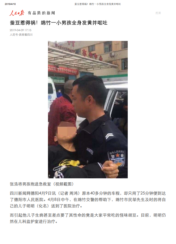 蚕豆惹得祸!绵竹一小男孩全身发黄并呕吐