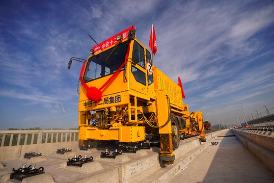 4月15日,中铁十二局集团的建设者操作机械在京雄城际铁路李营段施工。