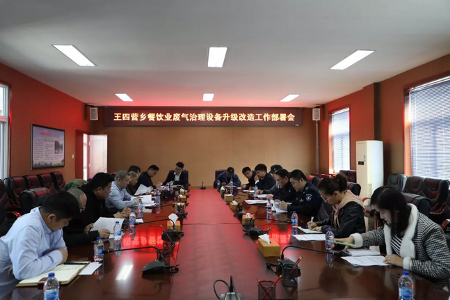 4月10日,王四营乡召开餐饮业废气治理设备升级改造工作部署会,辖区企事业单位食堂、餐饮单位负责人参会。