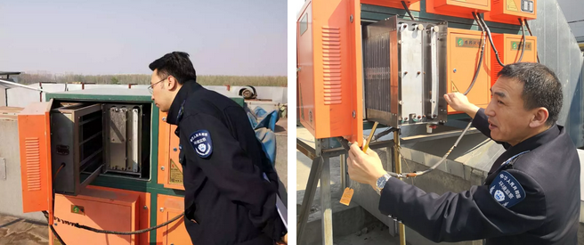 执法人员对废气净化设备进行检查,“一对一”指导升级改造工作,要求企业在完成升级改造任务的基础上,定期对废气净化设备进行维护清洗,及时记录。