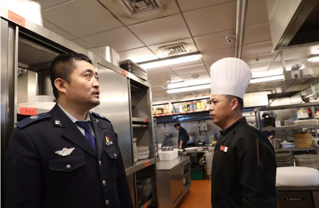 部署会结束后,执法人员对王四营乡辖区内的餐饮单位进行检查,现场指导废气净化设备升级改造工作,一一询问 “净化设备什么时候安装的” “多久清洗一次” “现场是否有清洗记录”等。