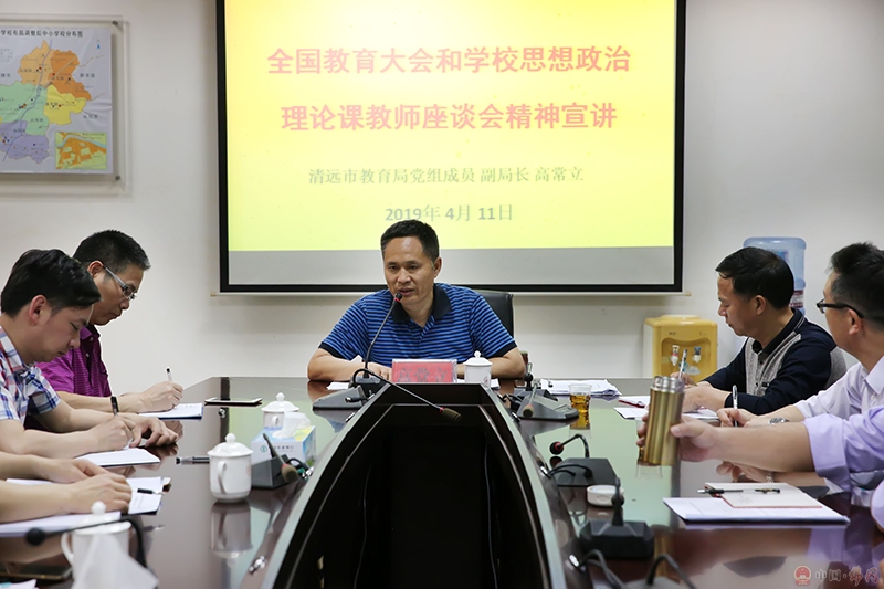 4月11日,清远市教育局党组成员、副局长高常立率市教育局办公室主任肖光辉、德安科科长陈劲松等6人到我县调研教育工作,并作全国教育大会和学校思想政治理论课教师座谈会精神宣讲。