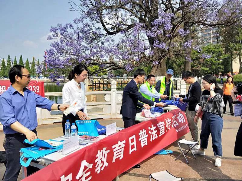 4月11日至15日,区司法局所属护国、华山、莲华、普吉、黑林铺、沙朗等司法所分别在南屏步行街中心广场、云南省图书馆、翠湖春晓公园、莲花池公园、小团山农贸市场、宝全路结合法律进企业、进农村、进单位、进社区等形式大力开展群众性宣传教育活动。
