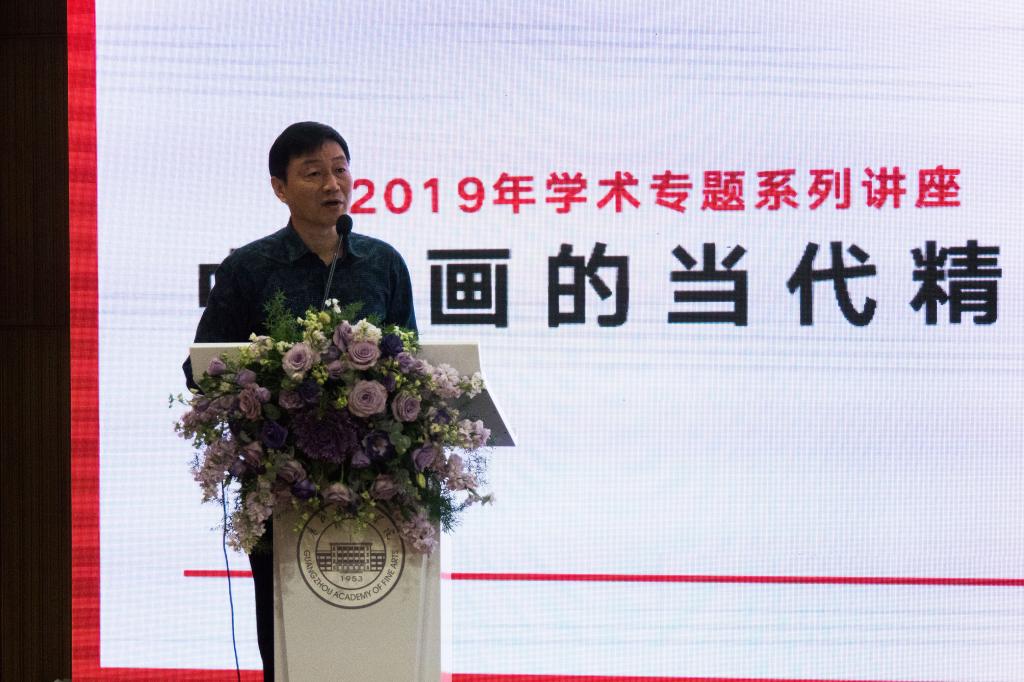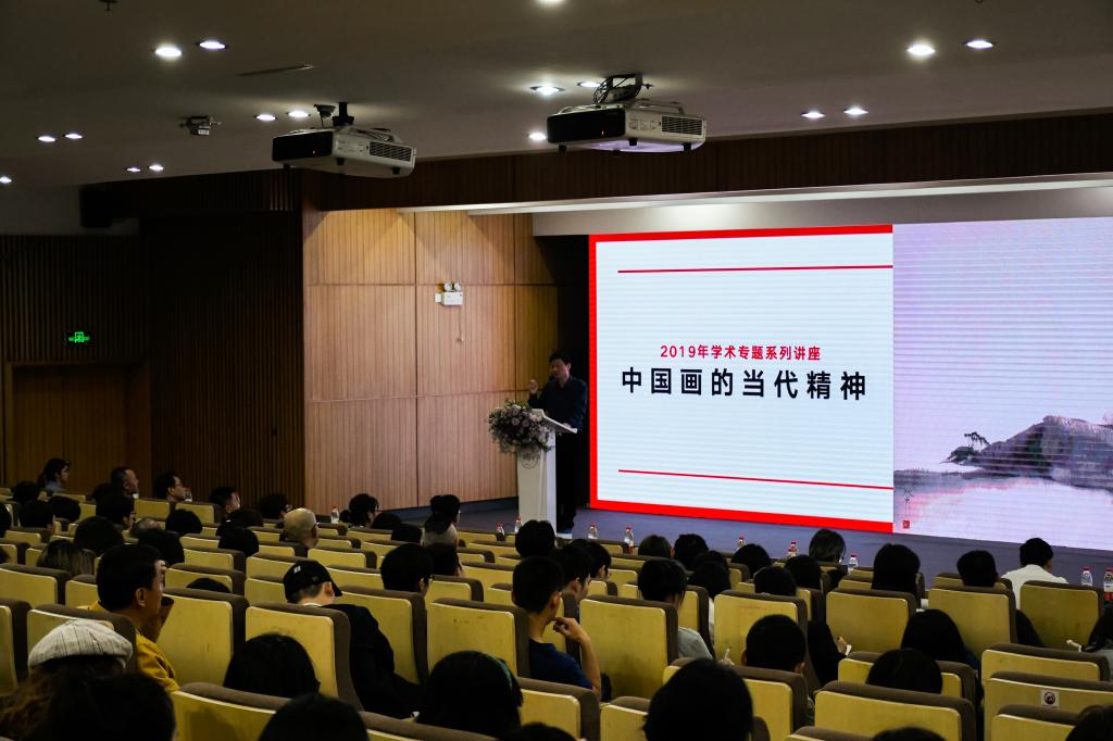 4月15日,受聘仪式结束后,南京师范大学美术学院院长、博士生导师,国务院学位委员会美术学科评议组成员,全国艺术硕士专业研究生学位教育指导委员会委员刘赦教授在我校昌岗校区设计大楼国际学术报告厅作题为“中国画的当代精神”学术讲座。学校副院长范勃、蔡拥华,相关职能部门负责人,中国画学院师生代表聆听了讲座。讲座由科研创作处副处长李勇主持。
