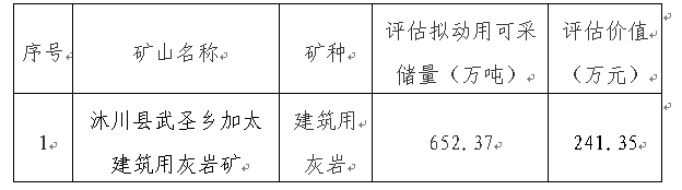 沐川县自然资源局关于《沐川县武圣乡加太建筑用灰岩矿采矿权出让收益评估报告》、评估报告主要参数表、评估机构及评估师承诺书和评估结果的 公示