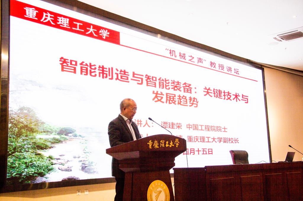 4月15日下午,中国工程院院士、浙江大学求是特聘教授谭建荣做客我校“机械之声”教授讲坛,在中山报告厅为机械学院师生带来题为“智能制造与智能装备:关键技术与发展趋势”的学术报告,本期讲坛由重庆理工大学副校长廖林清老师主持。重庆大学机械工程学院教授张根保、重庆文理学院机械工程学院院长罗天洪、重庆理工大学机械工程学院院长郭晓东、学院党委书记邹霞、副院长丁军、朱革以及300多名师生共同聆听了报告。