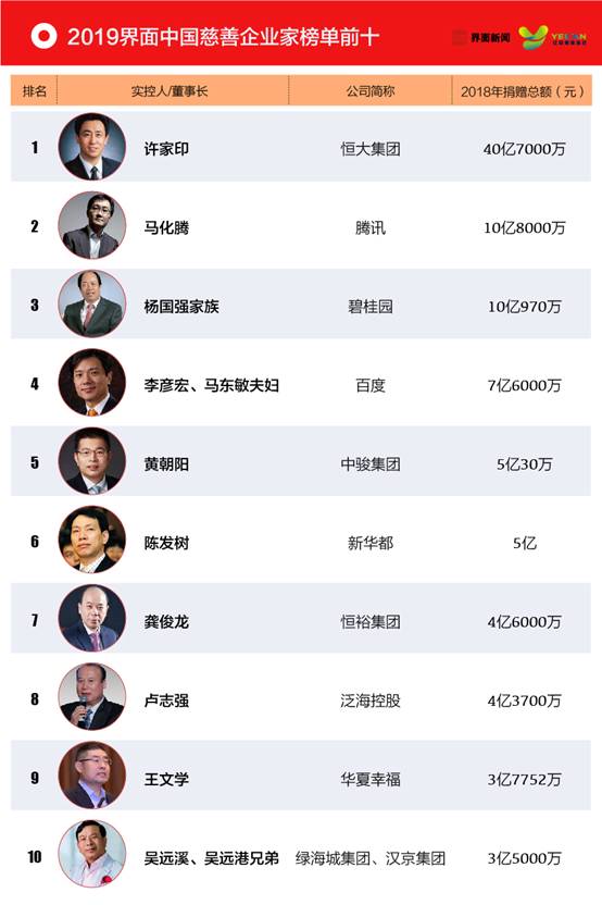 近日,乐居财经发布“2018中国内房股纳税排行TOP50”,界面新闻发布“2019中国慈善企业家榜”。