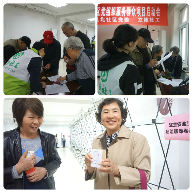 启动会共分为两大部分:第一部分以文明公约承诺、项目说明为主;第二部分以游园会的形式为主,既庄严又活泼。启动会首先以社区党委书记振奋人心的致辞开启,她谈到,党员要带头学习、要带头遵纪守法、要带头弘扬正气,用实际行动来促成问题的解决,把安慧里北社区党支部打造成为学习型、服务型的基层党组织。随后,在社区党委副书记黄蔚的带领下,全体起立对社区文明公约进行承诺,庄严的仪式感让与会人员深受感染。立德社工随后对项目进行了说明。