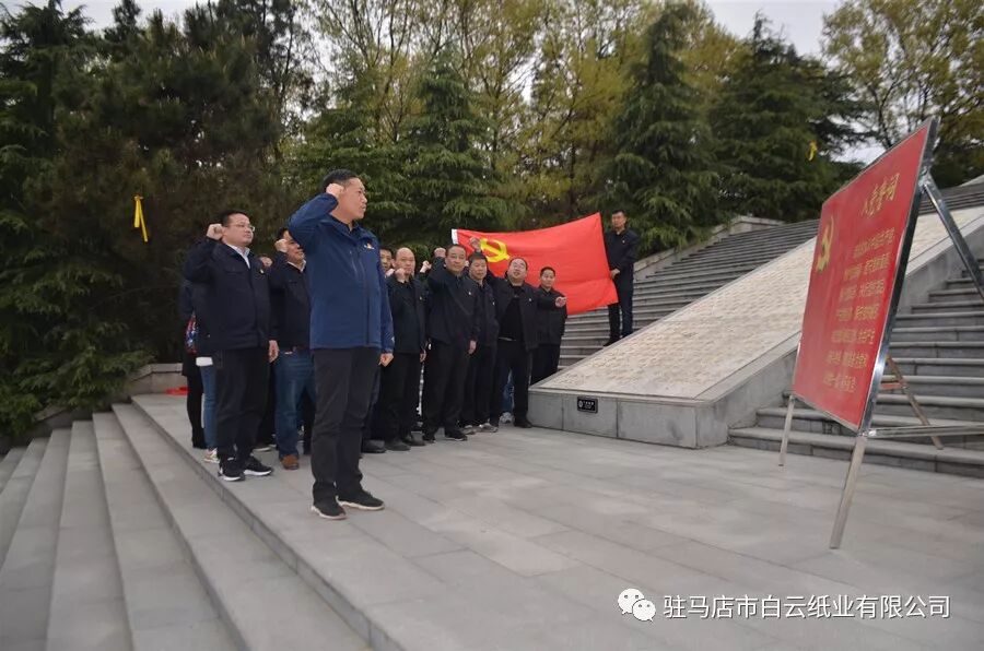 为加强理想信念教育,弘扬爱国主义精神,培育和践行社会主义核心价值观,教育党员干部不忘初心、牢记使命。2019年4月2日,白云纸业30余名党员代表在公司党委副书记、总经理王伟同志的带领下,来到确山县竹沟革命烈士陵园开展了以“缅怀革命英烈、凝聚出彩力量”为主题的主题党日活动。