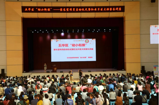 2019年4月12日下午14:30分,在昆八中体育馆举行了“五华区幼小衔接家长宣传月”启动仪式,来自红云片区的1000余名大班幼儿家长参加了启动仪式和培训。在启动仪式上,五华区教育体育局的领导提出要让科研成果真正使家长受益,使孩子受益。要落实各级教育部门对学前教育工作要求,重视幼小衔接,工作提升五华教育品质,进一步明确了“五华区幼小衔接家长宣传月”的意义和要求。启动仪式后,五华区基础教育科研中心学前室刘智菁主任做了《携手迈进小学大门》的主题讲座,刘老师从幼小衔接的重要性、五华区幼小衔接成果、做好哪些入学准备、好家长成就孩子未来四个方面对家长进行科学的幼小衔接指导,让家长收获了很多行之有效的方法。大观小学的马莹华校长则从案例出发,与家长共同探讨《学习习惯哪里来》,从生活习惯的矫正、学习习惯的培养等方面向家长传递了学习习惯从生活习惯迁移而来的观点,为家长指导孩子进入小学打好基础。