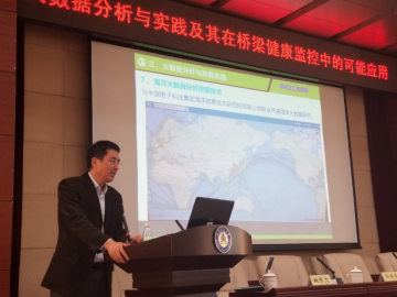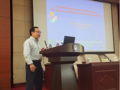我校特聘教授杨先一以“Possible Applications of Robotics and Big Data to Intelligent Bridge Health Monitoring”为题,从感知、监测识别、预测、控制4个方面对仿生机器人和大数据分析在桥梁健康监测中的应用进行了进一步的讲解。
