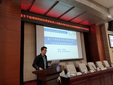 报告会上,俞志伟研究员从爬壁机器人国内外发展现状、仿壁虎机器人仿生结构设计(大壁虎仿生)、仿壁虎机器人粘附脚趾的性能测试与分析、仿壁虎机器人单脚掌碰撞粘附性能测试、仿壁虎机器全空间表面粘附运动实验、研制的多款仿生机器人运动展示等六个方面,同与会师生进行了交流,结合大量的实验数据和视频资料,生动展示了仿生机器人的研制过程,并就仿壁虎机器人在桥梁高墩、高塔检测中应用可能遭遇的困难与挑战同与会师生进行了讨论。