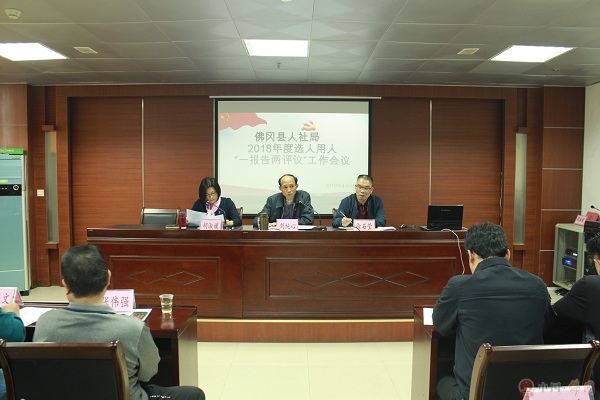 2019年4月15日,佛冈县人社局召开全体干部职工大会,对该局2018年度选人用人情况开展“一报告两评议”工作。