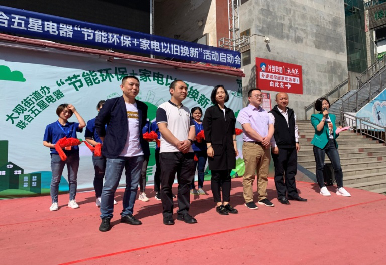 2019年4月17日,五华区大观街道携手云南五星电器有限公司、云南苏宁易购销售有限公司推出“节能环保+家电以旧换新”活动,辖区内300多位居民参与到活动中。