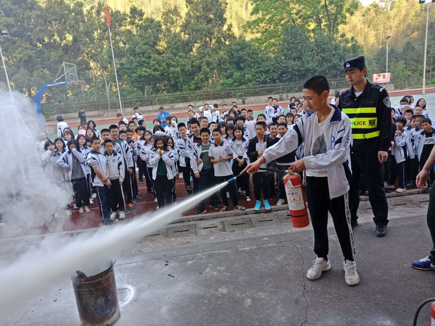 演练结束后,乡综治中心工作人员结合同学们生活实际,讲解了在家庭生活中如何防火、灭火,以及出现危险情况时如何更好的保护自己,特别强调如何正确使用家用电器以及在日常生活中需要注意的问题。现场还演示了干粉灭火器的使用方法及注意事项,在安全管理员的指导下,同学们还亲手体验并学习对模拟火源进行灭火的操作技能。