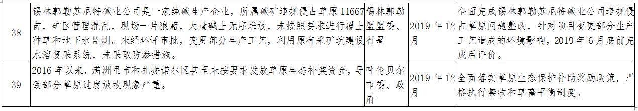 中央环境保护督察“回头看”及草原生态环境问题专项督察反馈意见