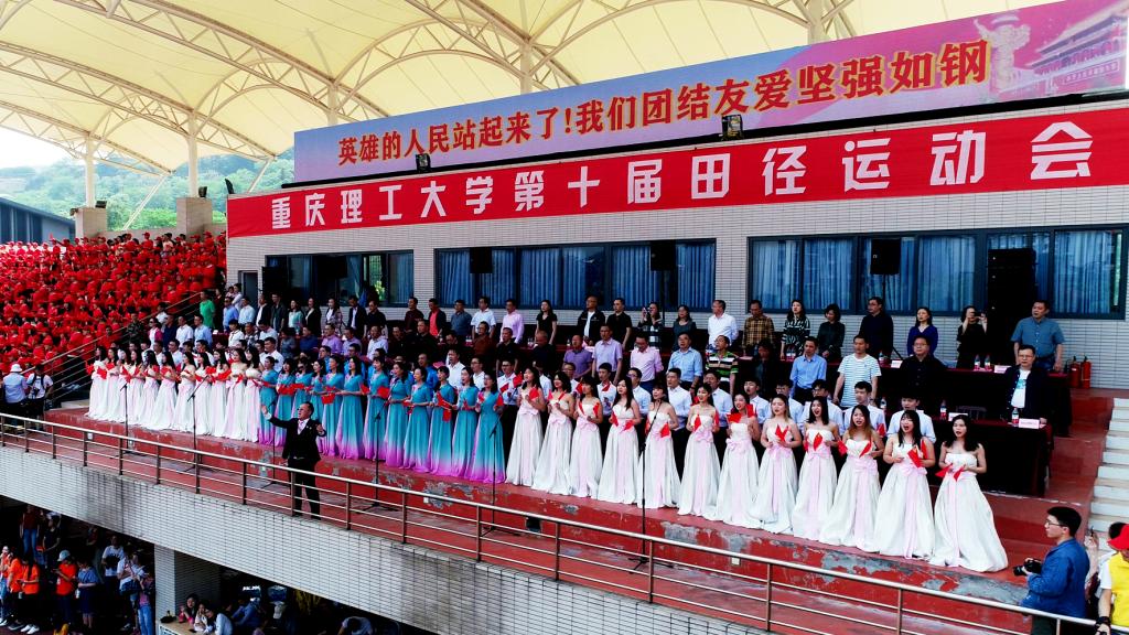 合唱结束后,校长石晓辉宣布:重庆理工大学第十届田径运动会正式开幕!