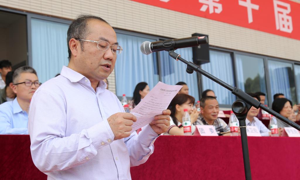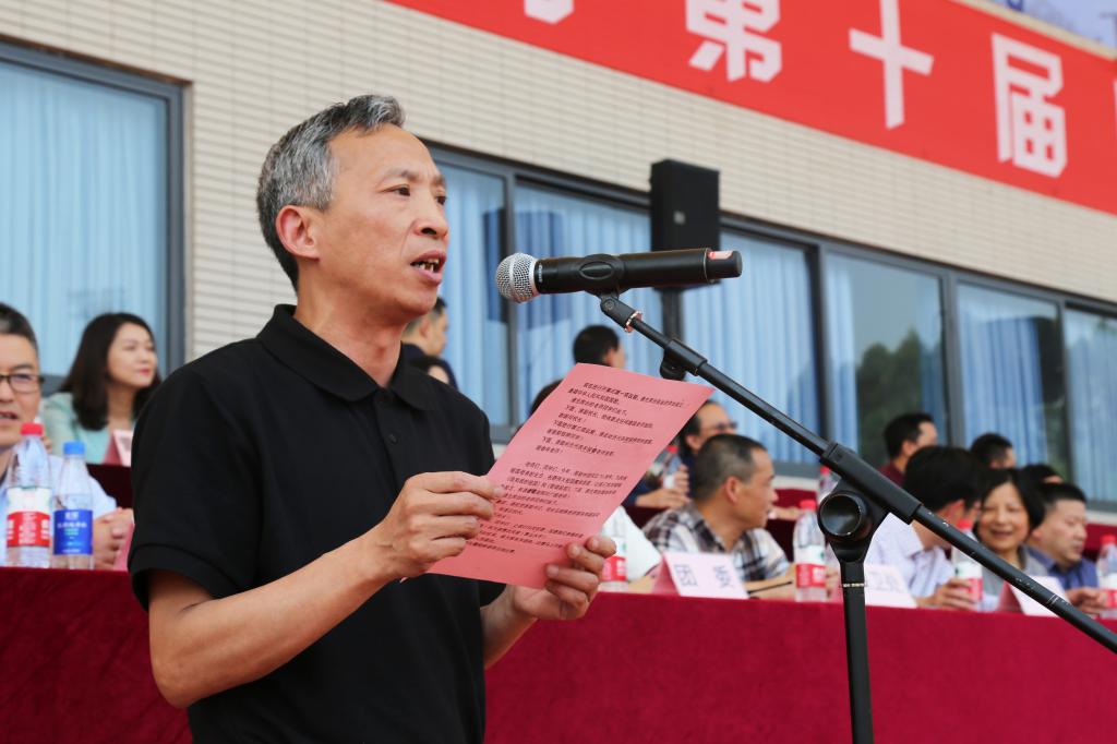 校体委主任、副校长何建国致开幕词。何校长代表学校党政向本届运动会的召开表示热烈的祝贺!向为筹备本次运动会付出辛勤劳动的全体工作人员表示衷心的感谢!向积极参加比赛项目的全体运动员、裁判员表示良好的祝愿!向一直关心支持体育工作,并为学校体育工作作出辛勤奉献的同志们表示衷心的感谢!在简短介绍学校体育运动发展史及取得的辉煌成绩后,何建国指出:“田径运动会既是学校体育水平的一次集中检阅,也是我校师生精神面貌的充分展现,更是所有运动员身心素质的综合考验,同时又是各单位集体意识、竞争意识、顽强拼搏精神的综合展现。”