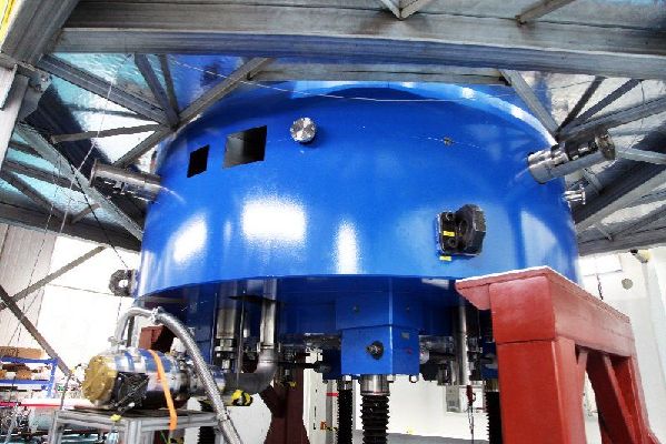 (在原子能院的一间厂房里,记者见到正在调试的230MeV超导回旋加速器)