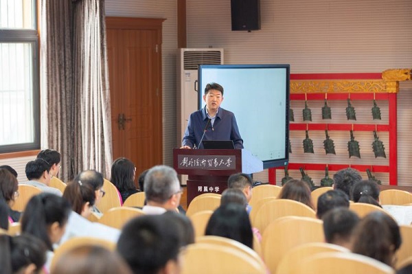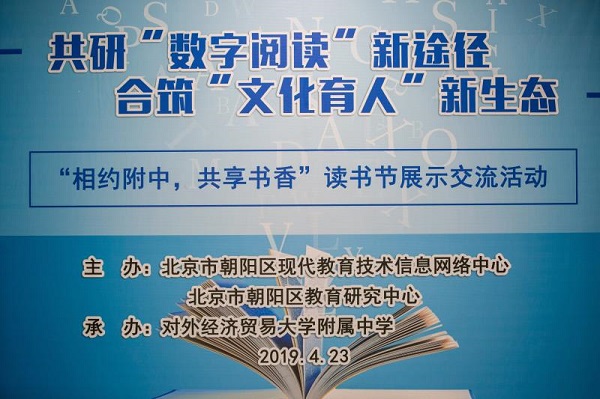 4月23日,由北京市朝阳区现代教育技术信息网络中心、北京市朝阳区教育研究中心主办,对外经济贸易大学附属中学承办的“相约附中,共享书香”读书节展示交流活动在贸大附中初中部举办。朝阳区教委副主任孙迅、朝阳区教委教育信息化科科长韩雪森、朝阳区教委信息网络中心副主任于瑞利参加活动。