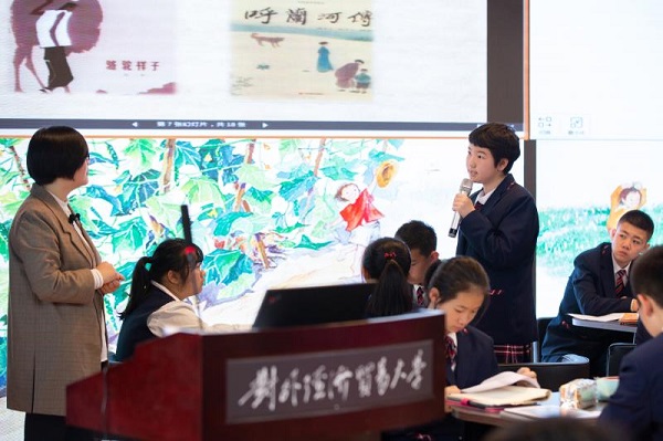 首先,贸大附中语文特级教师李燕就“大数据精准服务语文阅读教学——数字化阅读‘校本课程’研究”给现场的老师带来了一场别开生面的报告。李燕老师从学校整体阅读数据、初一年级阅读数据、班级个人阅读数据三个方面阐述了数字阅读能给教师们提供真实的、具体的、动态的学生阅读进度与效果。基于对学生阅读行为大数据分析的前提下,李老师又从阅读书目的确定、阅读兴趣的培养、阅读任务的设计、阅读策略的研究、阅读能力的测评、阅读成果的展示等六个维度进行了解读。接着,两位贸大附中教师分别带来了精彩纷呈的阅读分享课。
