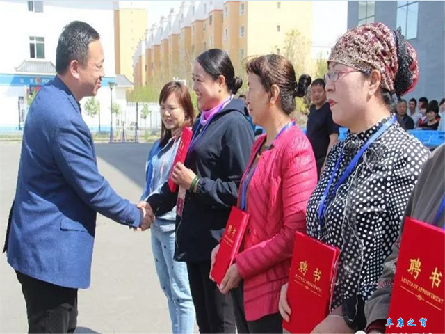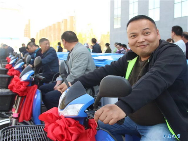 4月21日,九运街镇体育馆门口一片欢腾,副市长、市农村人居环境整治工作推进协调小组办公室主任木合牙提为九运街镇17个村、社区依次配发保洁车一辆。