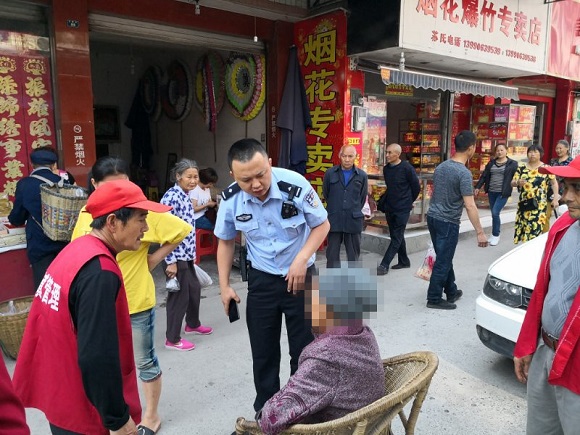 民警猜测,可能是由于天气炎热,老人因中暑而晕倒,他们立即从车里拿来了矿泉水,将给其喂了一些水。但老人意识有些模糊,不能准确叙述自己的身份和家庭住址等信息,巡逻民警先在事发现地周边走访,但是受访群众均表示不认识该老人。民警立即通过一标三实查询系统得知,该老人信息,老人心里犍为县同兴乡人,已有80岁高龄,后来等到老人意识清楚的时候巡逻民警才在和老人交谈中得知,老人独自一人来到来黄丹镇走亲戚,还没有走到亲戚家中,由于天气炎热,老人越走越感觉头晕,到达黄丹村口,由于体力不支晕倒在路旁。