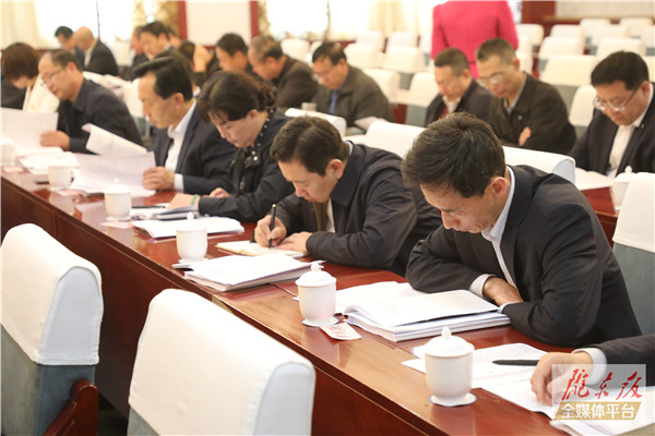 会议传达学习了习近平总书记在解决“两不愁、三保障”突出问题座谈会和中央政治局会议上的重要讲话精神,中共中央政治局常委、全国政协主席汪洋在各民主党派中央脱贫攻坚民主监督工作座谈会上的讲话精神,国务院副总理胡春华在全国东西部扶贫协作和中央单位定点扶贫工作推进会议上的讲话精神,省委常委(扩大)会议精神,省脱贫攻坚领导小组2019年第三次会议暨省中央脱贫攻坚专项巡视反馈意见整改工作领导小组第二次会议精神,全省脱贫攻坚重点领域固强补弱现场推进会议精神;听取了6个县和相关部门工作情况汇报;签订了《庆阳市2019年东西部扶贫协作责任书》。