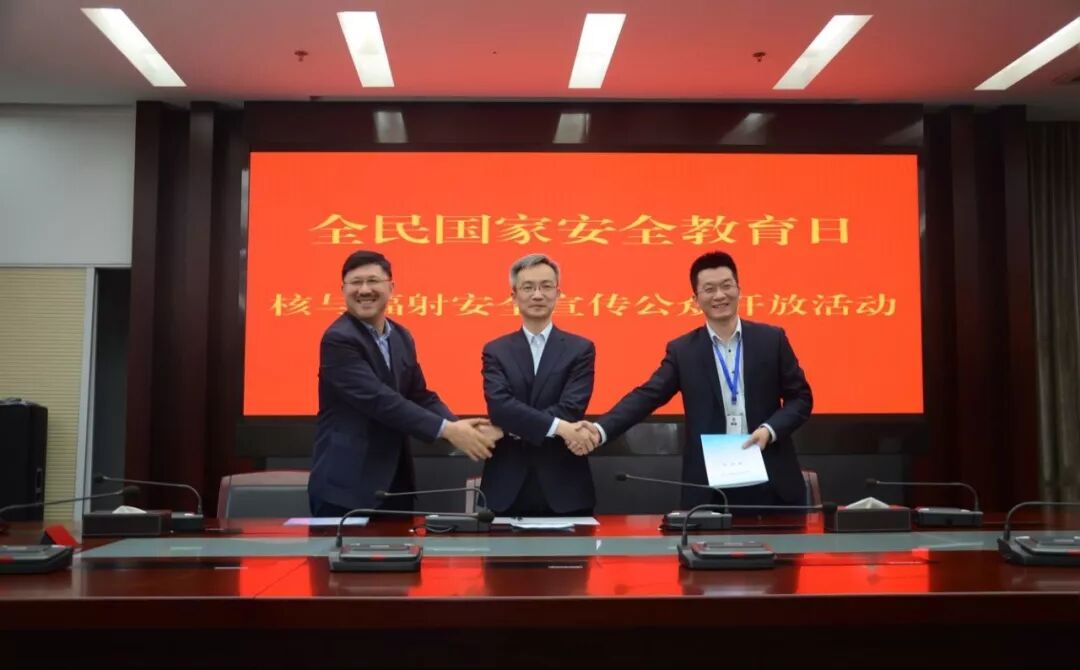 活动现场,江苏省核管中心与南京航空航天大学、南京理工大学、江苏第二师范学院、江苏省辐射防护协会、苏核辐射科技有限责任公司分别签订共同开展核与辐射科普宣传的合作协议。
