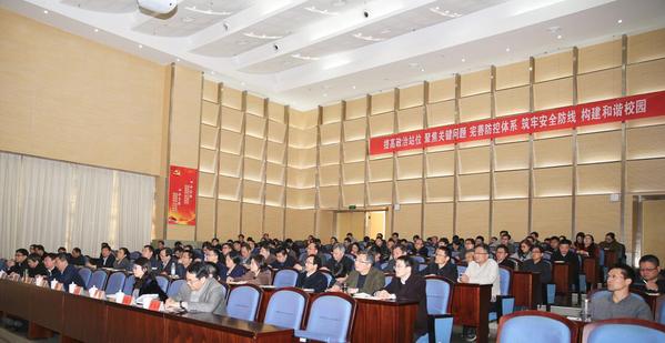 何正东书记简要回顾总结了学校2018年安全稳定及意识形态工作,从外部环境、国家发展和学校内部三个方面,剖析了当前安全稳定及意识形态工作面临的新形势,对我校全年工作进行了部署。