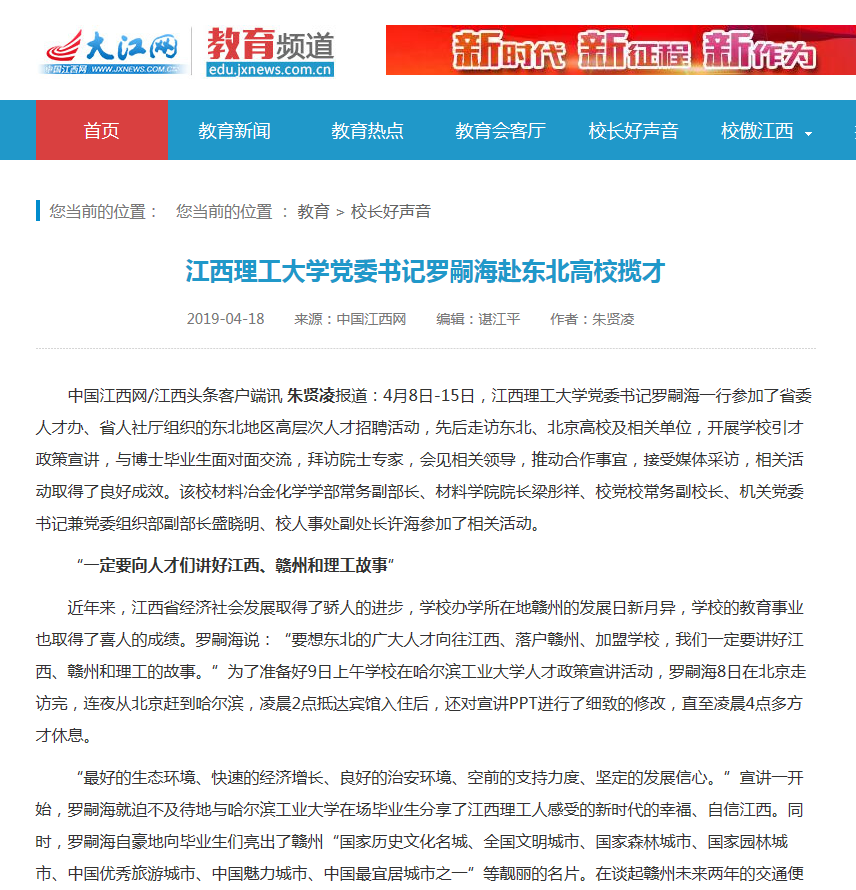 《中国江西网》:江西理工大学党委书记罗嗣海赴东北高校揽才
